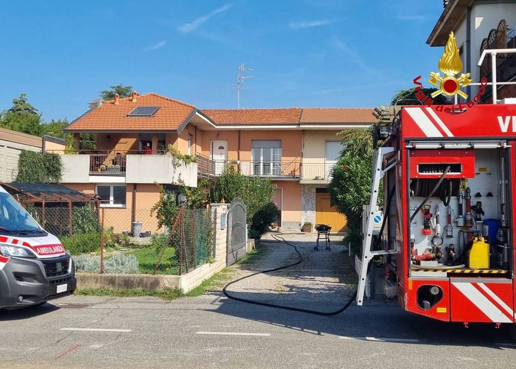 FOTO. Incendio in un'abitazione di Samarate, i vigili del fuoco mettono in salvo due persone