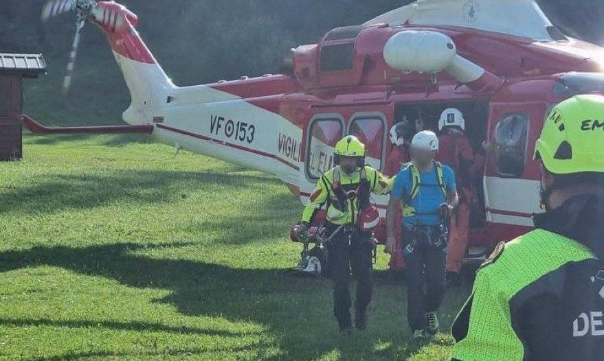 Due delle persone che si trovavano in cordata sulla via Clipper a Conca dell'Aben sono rimaste ferite e soccorse con due elicotteri tra cui quello dei vigili del fuoco: recuperati, anche con l'ausilio del verricello, altri escursionisti che si trovavano nella vicinanze in una zona non sicura