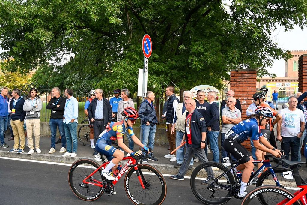 Al via la Tre Valli Varesine femminile: Busto Arsizio guarda il fermento al museo del Tessile dove si iscrivono le squadre sotto lo sguardo del patron della “Alfredo Binda” Renzo Oldani, poi ecco che le atlete si avvicinano al municipio. Qui scattano alle nove.