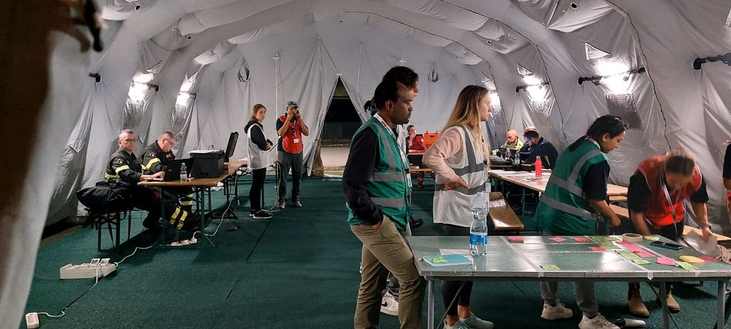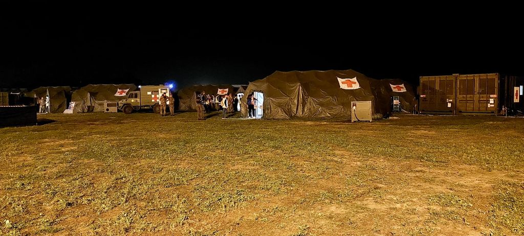 Finita la parte sul luogo del disastro, i mezzi sono partiti in direzione della caserma Nato, dov’è stato allestito l’ospedale di campo.