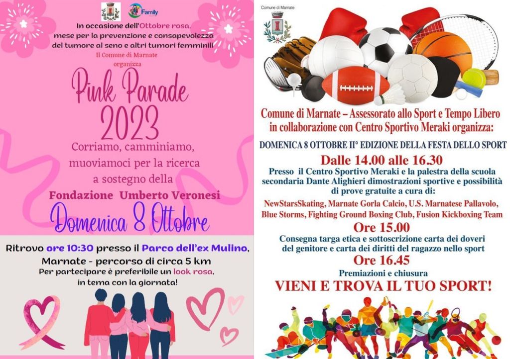 Il primo appuntamento è previsto per le 10.30 di domenica 8 ottobre quando, al parco dell’Ex Mulino, partirà l’edizione marnatese della Pink Parade, la camminata non competitiva che si propone di mantenere alta l’attenzione riguardo ai tumori femminili in occasione dell’ottobre rosa e di sostenere al contempo la Fondazione Veronesi.
