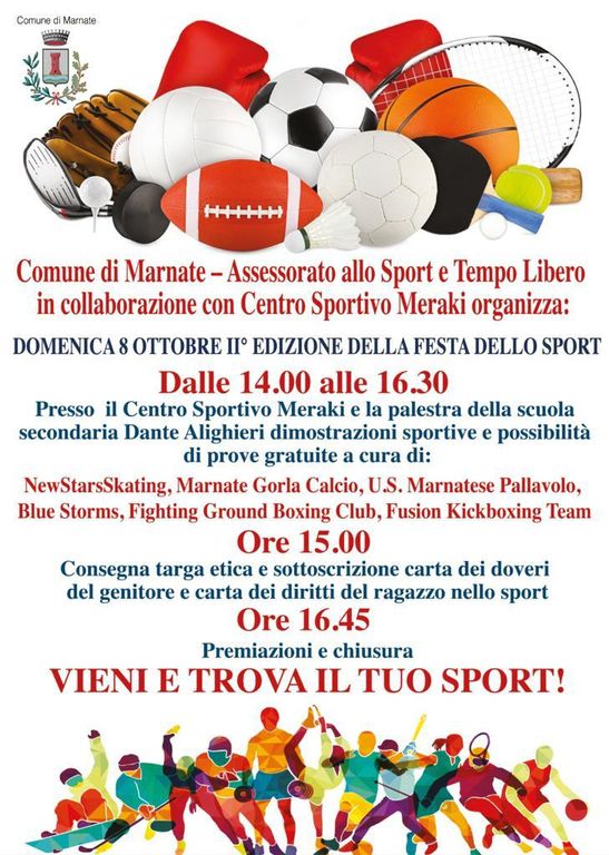 «A partire dalle 14.30 le realtà sportive di Marnate – spiega l’assessore Sara Liguori – troveranno spazio all’interno del centro Meraki e della palestra delle scuole medie per una serie di dimostrazioni pratiche che daranno modo a tutti di imparare qualcosa in più su di loro e di conoscere meglio la disciplina a cui si dedicano.