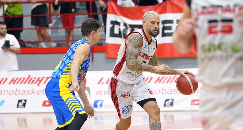 Nel primo quarto la presenza di Sacchettini e Marino tiene in scia i Knights e dopo 10' il punteggio è sul 22-24.