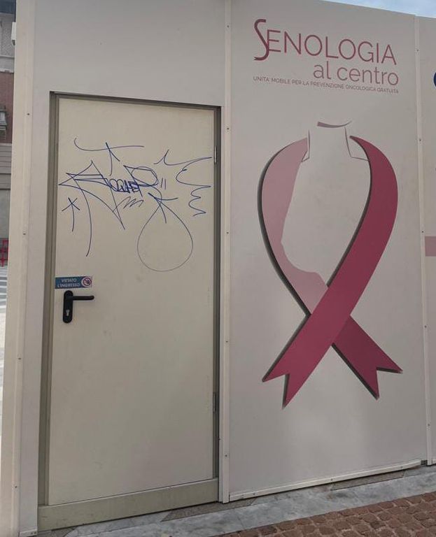 Nella notte di giovedì 12 ottobre, la clinica mobile di Senologia al Centro è stata vandalizzata da ignoti individui, che hanno deturpato le facciate della struttura in piazza San Giovanni.