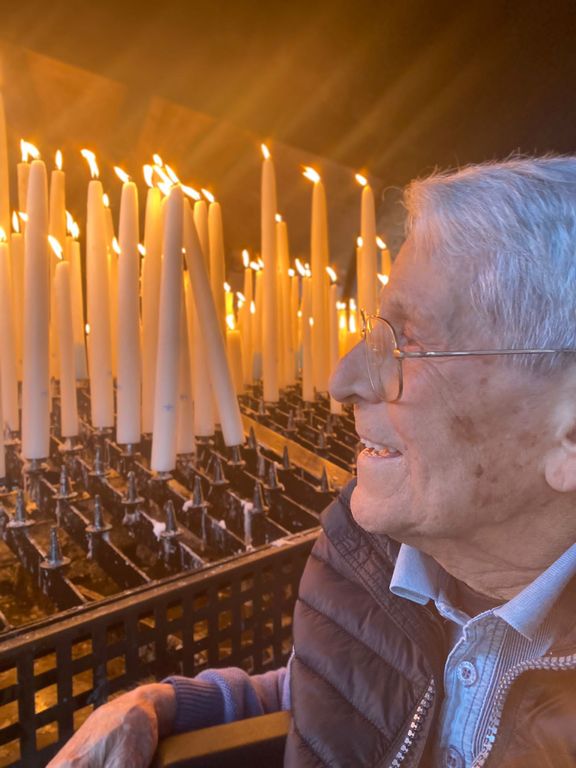 Ce n'è un'immagine particolarmente toccante: il volto di un pellegrino davanti alle candele accese, che lo illuminano in un sorriso. Un sorriso che arriva dritto fino a Busto. Ecco, è come se ciascuno di questo gruppo avesse portato Busto, la sua Busto, con sé. Ciascuno con la sua preghiera, la sua sofferenza, la sua speranza, la sua felicità, e con quelle di tutti.
