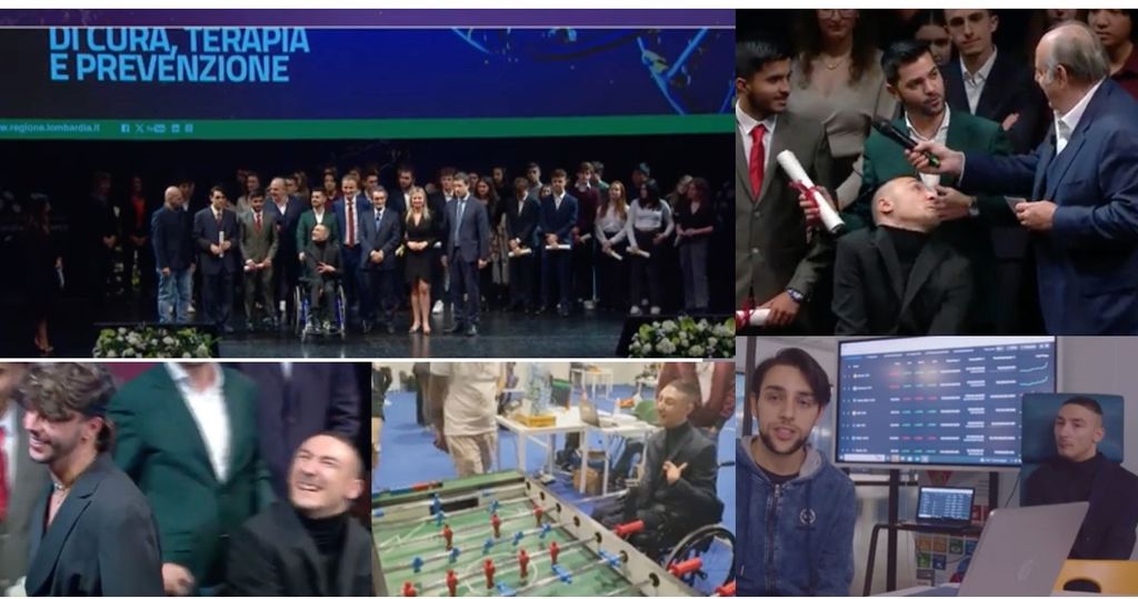 Tra gli applausi quelli di Gerry Scotti, che introduceva questa parte di premi accanto al presidente Attilio Fontana. E si è detto ammirato di tutti i progetti dei ragazzi, soffermandosi poi con i vincitori, guidati dai professori Loris Pagani e Francesco Pisani. "Kick On - Siete bravi nel vostro campo... lo sarete anche nel mio?", è stato messo a punto a Castellanza: un prototipo di calcio balilla per disabili, che ha come target persone con disabilità agli arti superiori e affetti da patologie come la tetraparesi distonica di tipo spastico. Di fronte al limitato uso delle braccia, ecco che si trova un modo di partecipare a questo gioco con le gambe. LEGGI QUI