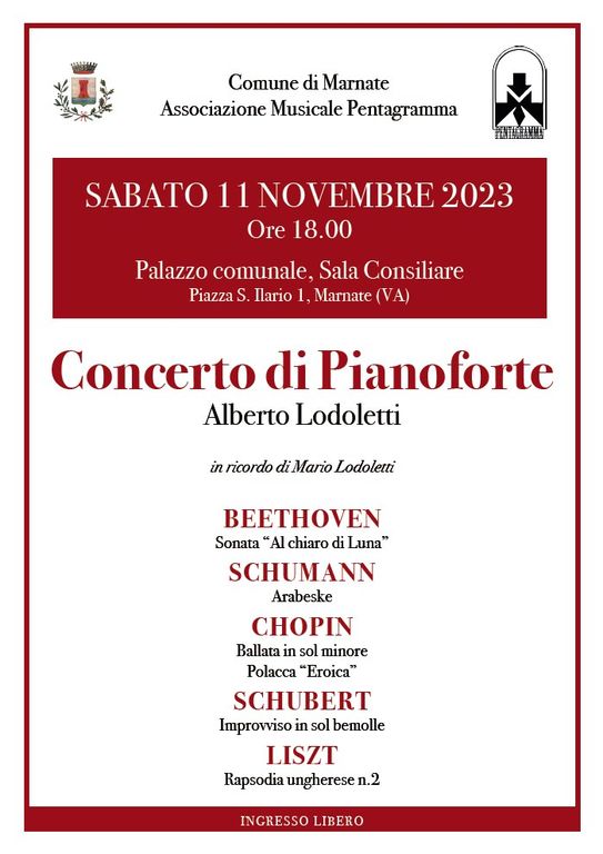Sabato 11 novembre alle 18, dunque, all’interno della Sala Consiliare del comune di Marnate, suo figlio Alberto Lodoletti si esibirà al pianoforte in memoria del padre; una scelta sicuramente non solo dettata dal fatto che Alberto Lodoletti sia ormai da anni un artista di fama internazionale, ma anche dal grande amore che Mario ha sempre avuto per la musica.
