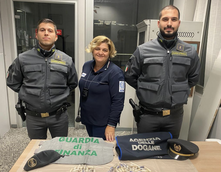Un cittadino nigeriano è stato fermato dagli ispettori dell'Agenzia delle dogane e dalle Fiamme Gialle al valico autostradale di Brogeda a bordo di un bus proveniente da Amsterdam e diretto a Milano. In valigia aveva altri 49 involucri