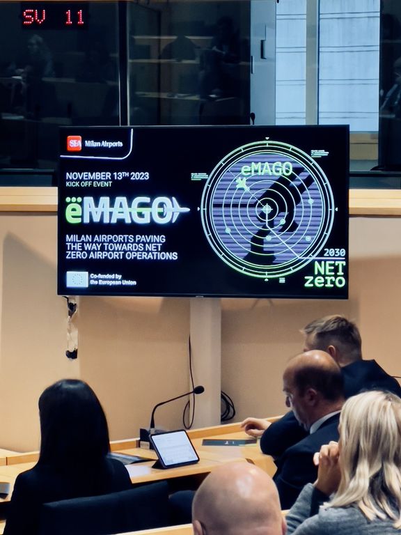 SEA, la società di gestione degli aeroporti di Milano, ha presentato al Parlamento europeo il progetto eMAGO, una tappa significativa nel processo di elettrificazione degli scali milanesi. Questo progetto è finanziato da CEF (Connecting Europe Facility), programma dell'Unione europea gestito da CINEA (Agenzia Esecutiva Europea per il Clima, le Infrastrutture e l'Ambiente).