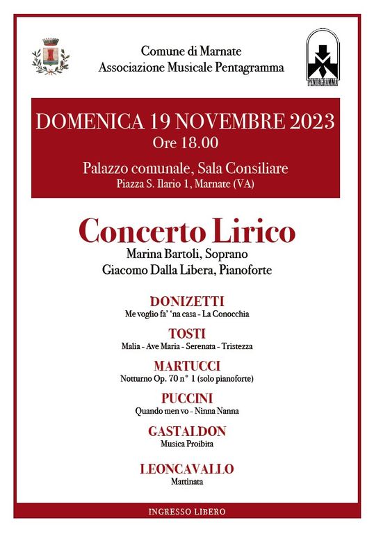 L’evento, che inizierà alle 18 all’interno della sala consiliare del comune di Marnate, fa parte della rassegna musicale che sta offrendo, nelle ultime settimane, a chiunque risieda in paese la possibilità di godere di esibizioni di altissima qualità a pochi passi da casa sua, come è avvenuto la scorsa settimana per il concerto del maestro Alberto Lodoletti. L’ingresso è libero per chiunque vorrà partecipare.