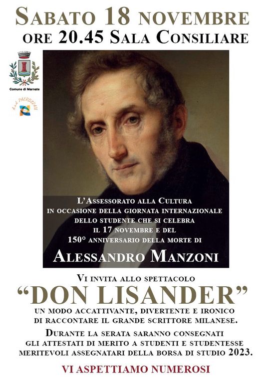 Ma la giornata di sabato non finirà con i laboratori natalizi; in serata, infatti, a partire dalle 20.45, la sala consiliare ospiterà uno spettacolo decisamente unico nel suo genere, realizzato per celebrare il 150°anniversario della morte di Alessandro Manzoni.