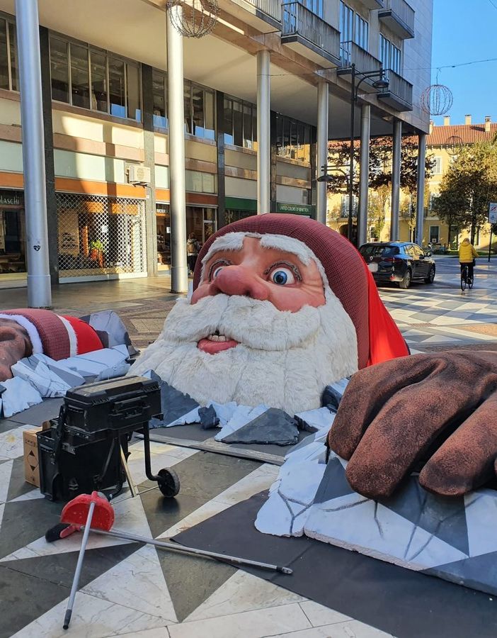 A Busto Arsizio è arrivato Babbo Natale. Anzi, è “sbucato”. Sta prendendo forma in via Milano l’installazione “Babbo Natale vien da sotto”, destinata ad attirare la curiosità di chi passeggerà per le vie del centro, in particolare dei più piccoli.
