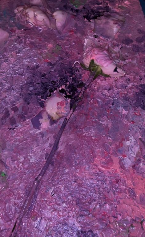 «È una rosa vera – spiega Manuela Carnini in riferimento all’opera - perché sto usando le rose vere e riesco poi, con una tecnica particolare, a farle rimanere come cristallizzate».