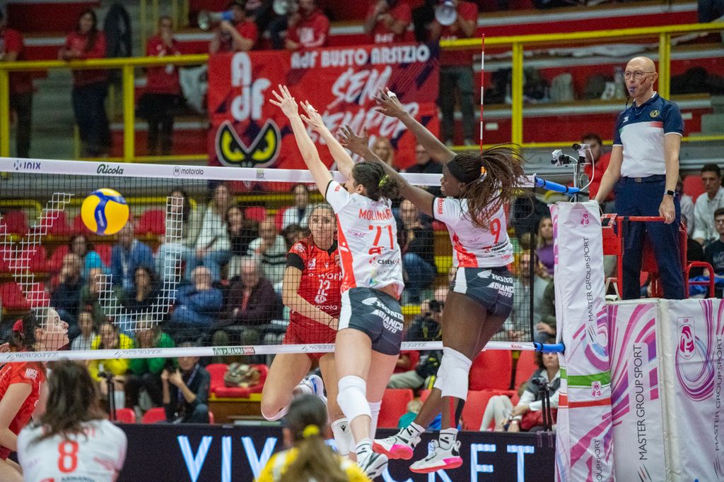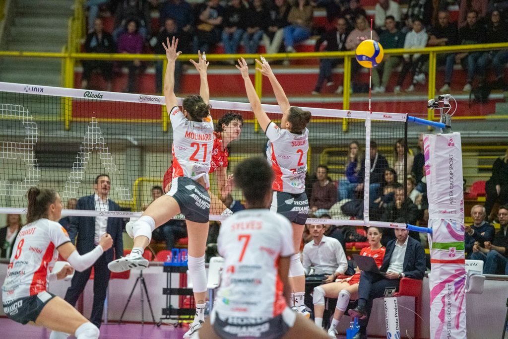 Honda Olivero San Bernardo Cuneo: Haak 5, Sylves 14, Enweonwu 7, Kubik 9, Molinaro 10, Signorile 1; Scognamillo (L). Scola, Tanase, Strigot 18, Adelusi 17. N.e.: Thior, Ferrario, Hall. All.: Bellano.