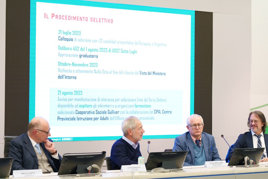 Sono 12 gli infermieri sudamericani reclutati tramite bando dall'Asst Sette Laghi che entreranno in servizio tra metà dicembre e febbraio. Lo ha annunciato l'assessore regionale al Welfare Guido Bertolaso in conferenza stampa a Palazzo Pirelli presentando il progetto di assunzione del personale infermieristico straniero avviato dall'Azienda Socio Sanitaria territoriale varesina.
