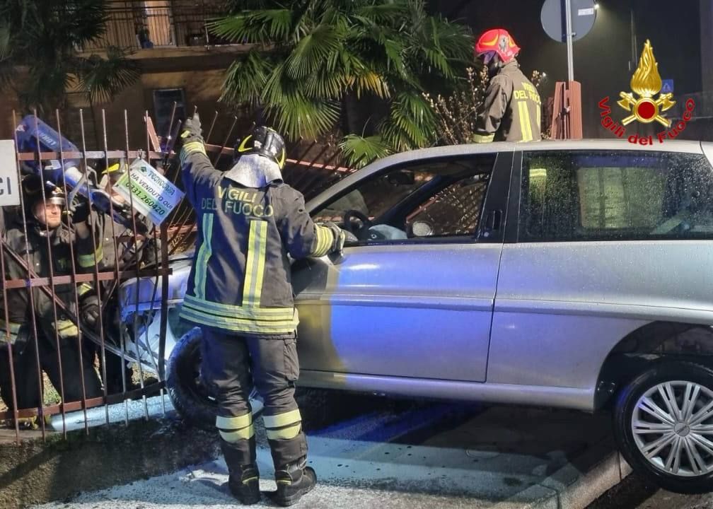 FOTO. Perde il controllo dell'auto e sfonda la recinzione di una casa a Cardano Al Campo, ferito un 29enne