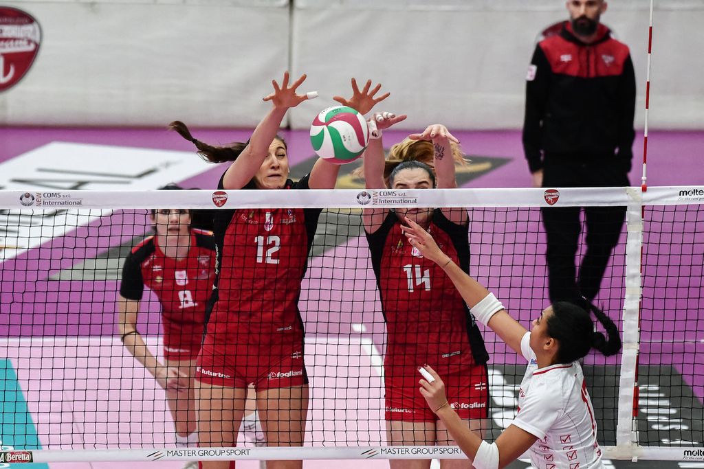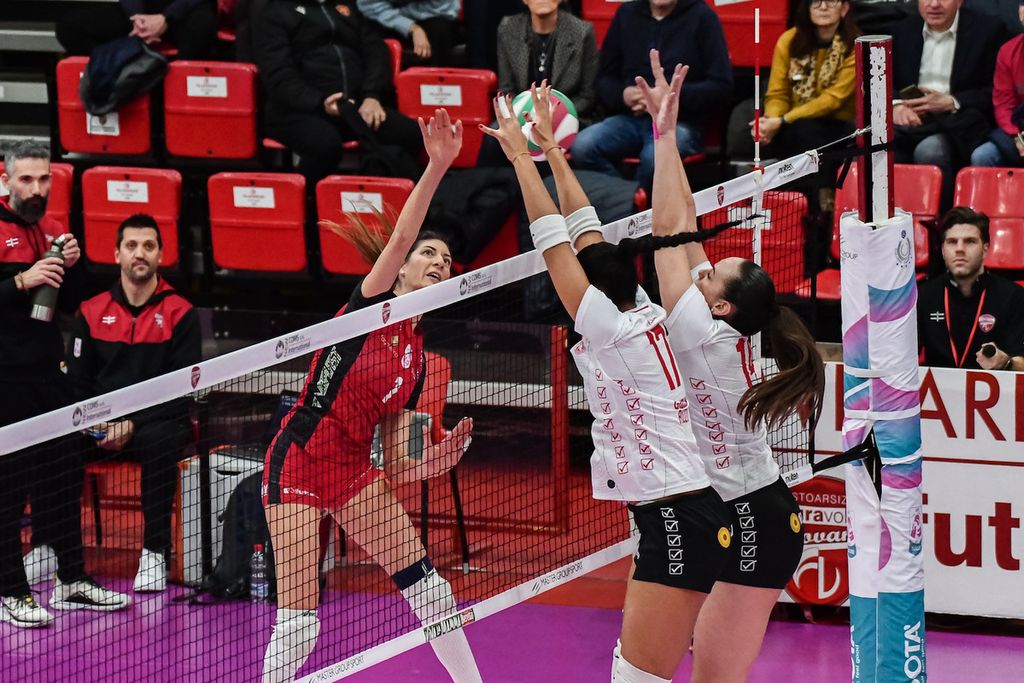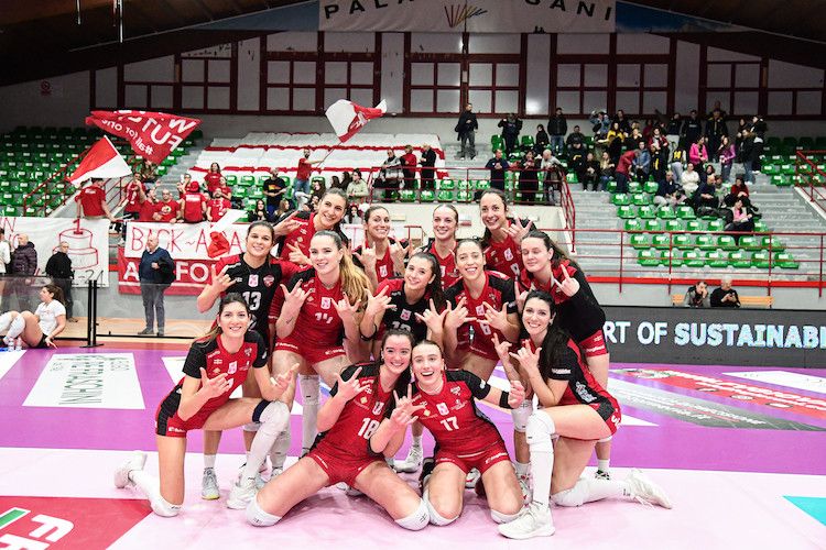 Rispondono presente anche tutte le cocche che fino ad ora avevano trovato meno spazio mettendo in campo una prestazione di carattere e mostrando tanta voglia di fare grazie all’aiuto e all’esperienza degli elementi di punta del team. Spicca senza dubbio la prestazione magistrale dei centrali con la capitana Tonello che si prende il titolo di top scorer con 13 punti e 4 muri, non da meno la partner di ruolo Furlan, mvp del match con 12 punti e 4 muri.