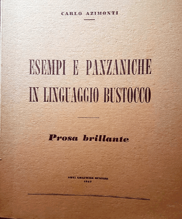 L'ho tradotto così, il titolo di una delle "panzaniche in Linguaggio Bustocco" dell'esimio Carlo Azimonti in "Prosa brillante" edita nel 1957 da "Arti Grafiche Bustesi" - il motivo è semplice: mette in luce il Dialetto Bustocco d'epoca fra chi ha imparato il Dialetto in età adulta e chi, invece, il Dialetto lo ha imparato a partire dal "succhiare il latte materno" in poi.