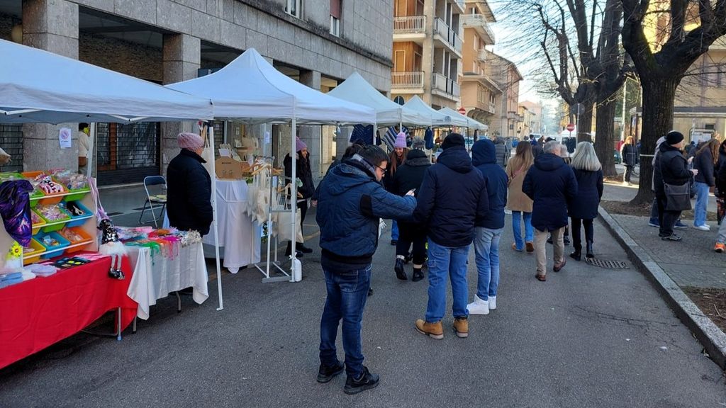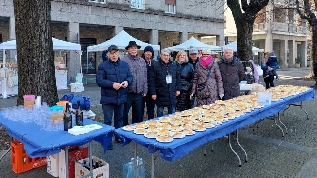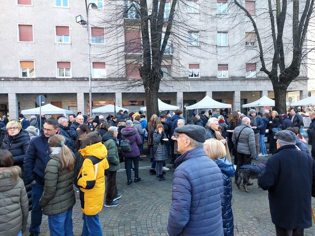 Usciti da chiesa, poi, moltissimi si sono attardati in piazza Paolo VI per gustare l’abbondante aperitivo offerto dai volontari del Rione In Sü e per ascoltare l’esibizione del Corpo Musicale Santa Cecilia, prima di fare un ultimo giro per le bancarelle prima di pranzo.