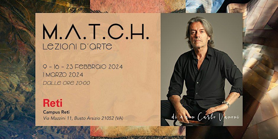 Durante le quattro serate Carlo Vanoni, storico dell’arte, consulente di varie gallerie d’arte, curatore di mostre e ideatore di BienNolo, la biennale d’arte contemporanea di NoLo, approfondirà i temi che hanno plasmato e influenzato le opere dei grandi maestri del passato e che ancora oggi sono al centro di molte riflessioni artistiche, da qui il titolo della rassegna M.A.T.C.H.
