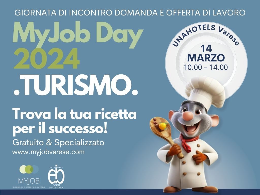 A un anno di distanza, l’Ente Bilaterale del Turismo della provincia di Varese rinnova l’appuntamento con il My Job Day. Dopo la prima edizione a Ispra e la seconda al Grand Palace Hotel, il prossimo 14 marzo si torna a Varese, all’Unahotels (via Francesco Albani 73).
