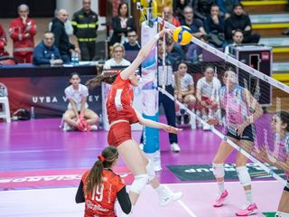 Nel primo set Smarzek e Perinelli hanno subito il braccio caldo (2-6) e allora coach Cichello è subito costretto a spendere il suo primo time-out. Lohuis e ancora Perinelli allungano (2-8), poi i muri di Frosini e Sartori provano a dare la scossa (5-8); Lee e Lohuis non ci stanno (6-12), mentre sul 6-13 la Uyba prova il doppio cambio con Valkova e Fields in campo per Boldini e Frosini. Hancock firma l'ace del 7-15 e Cichello ferma ancora il gioco, poi Lee e il muro di Smarzek fanno 8-18 (dentro Carletti per Bracchi). Lee firma l'ace dell'8-20 e chiude di fatto il set: Carletti e Sartori provano il recupero impossibile (15-22), Piva fa chiamare time-out a Pintus (19-24), ma Casalmaggiore la spunta 19-25 con il muro di Lee.