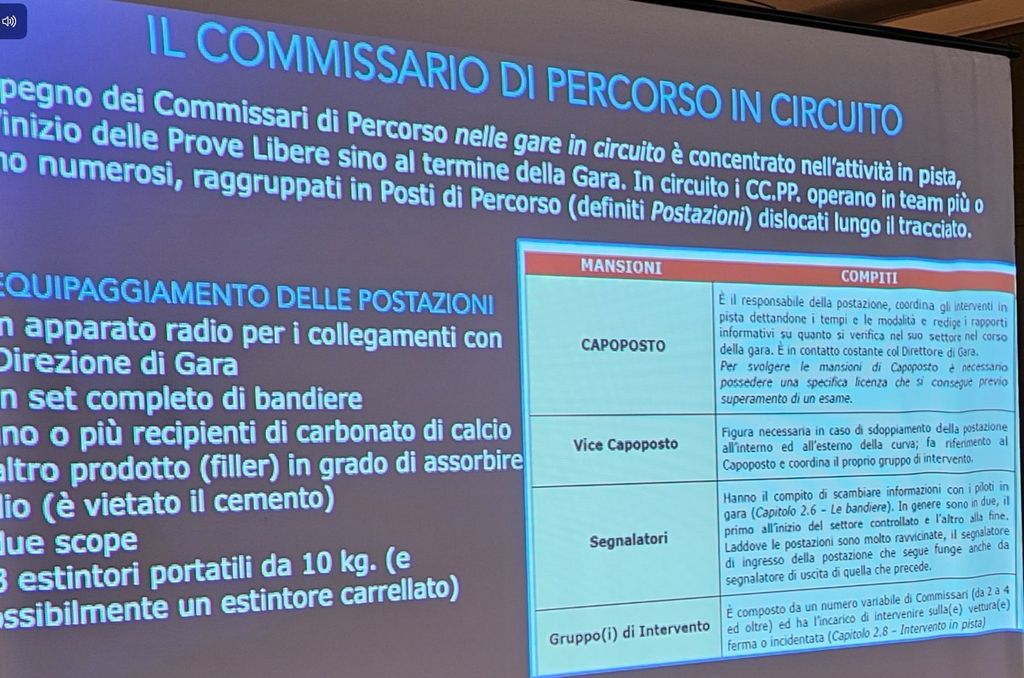 Con l’ausilio di immagini, video e testimonianze, il corso di Aci Varese ha approfondito ogni area di competenza dei commissari di percorso, citando norme regolamentari, casi pratici che si incontrano nelle gare stradali e in pista, garantendo eccellenti standard di sicurezza.