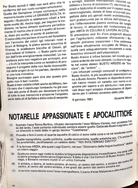 Qui, a Busto Arsizio, "si fa sul serio" e la prospettiva analizzata dall'amico Magini, rende Giustizia alla realtà che nel 1991 era palese nei concetti e che, nel prosieguo del "fare" si può ben comprendere. Il Carnevale "passa", la "prospettiva" prosegue nell'attuazione!