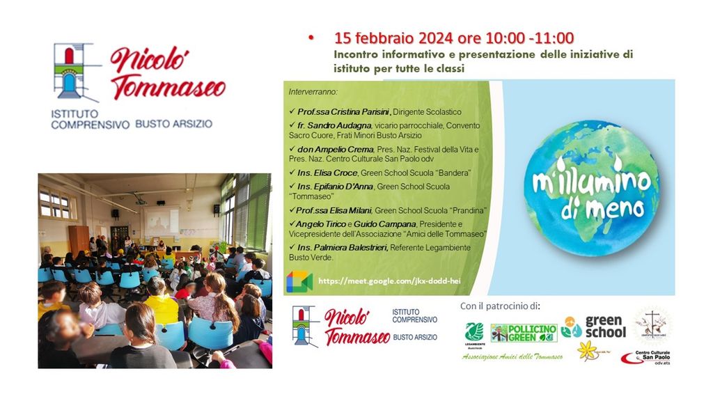 Sono interventi con una rappresentanza degli studenti dei tre ordini di studi con i rappresentanti della commissione Green School: l’ins. Elisa Croce (Scuola “Bandera”), l’ins. Epifanio D’Anna (Scuola “Tommaseo”) e la prof.ssa Elisa Milani (Scuola “Prandina”). All’evento, introdotto dalla prof.ssa Cristina Parisini (Dirigente Scolastico), ha partecipato tutta la comunità scolastica via meet.