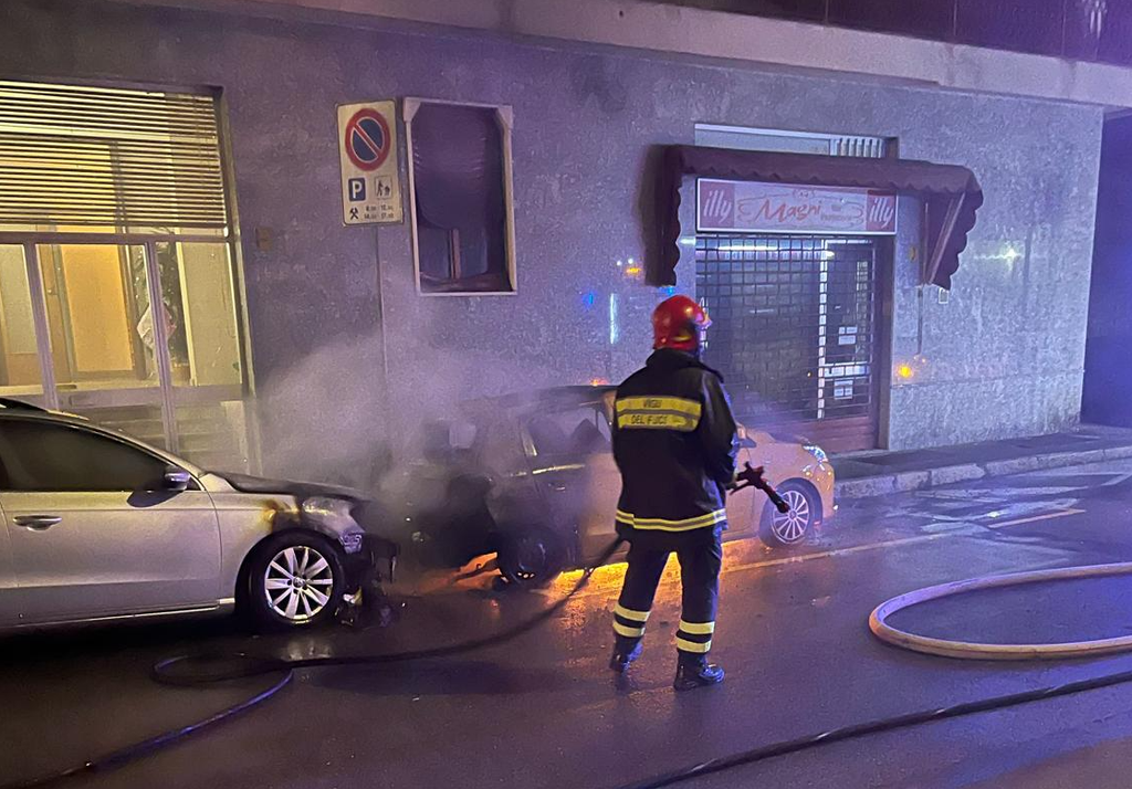Vigili del fuoco in azione questa notte, coinvolti almeno nove mezzi: un uomo avrebbe appiccato i roghi in tre punti diversi. Gli abitanti: «Abbiamo avuto paura che i mezzi esplodessero»