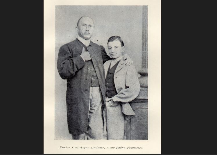 «Discende da due famiglie bustesi onorate dallo studio e dal lavoro di generazioni» e ancora «Nato, per caso, ad Abbiategrasso nel 1851, Enrico Dell’Acqua si ribellò contro questo scherzo della sorte, e per essere ricongiunto al suo vero paese si proclamò sempre bustese con orgoglio: büstoc, era per lui un titolo nobiliare…».