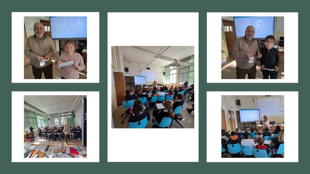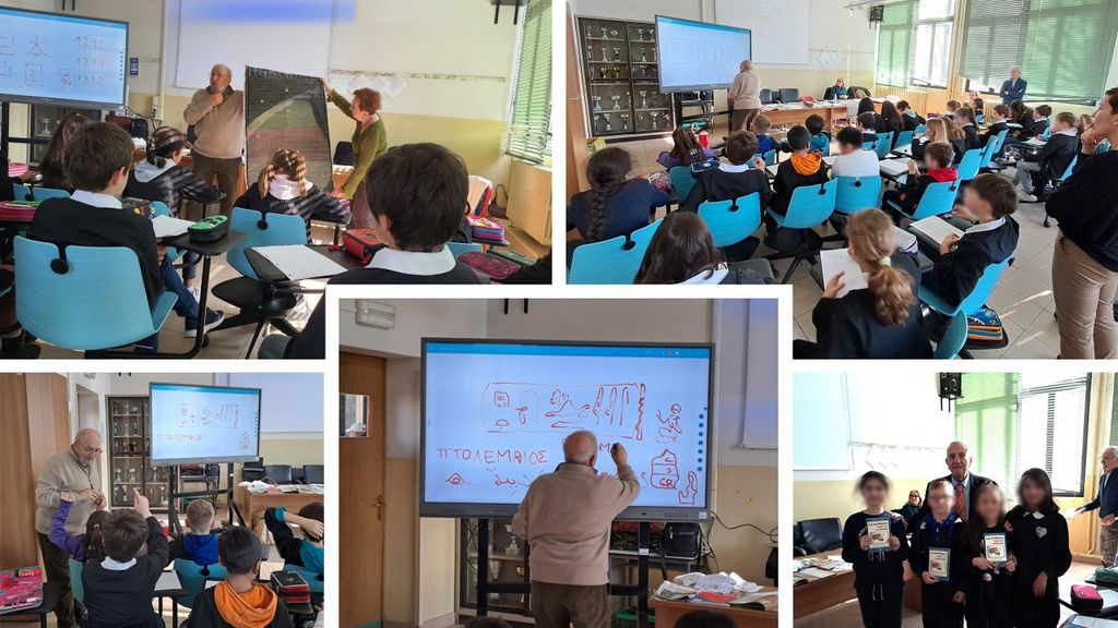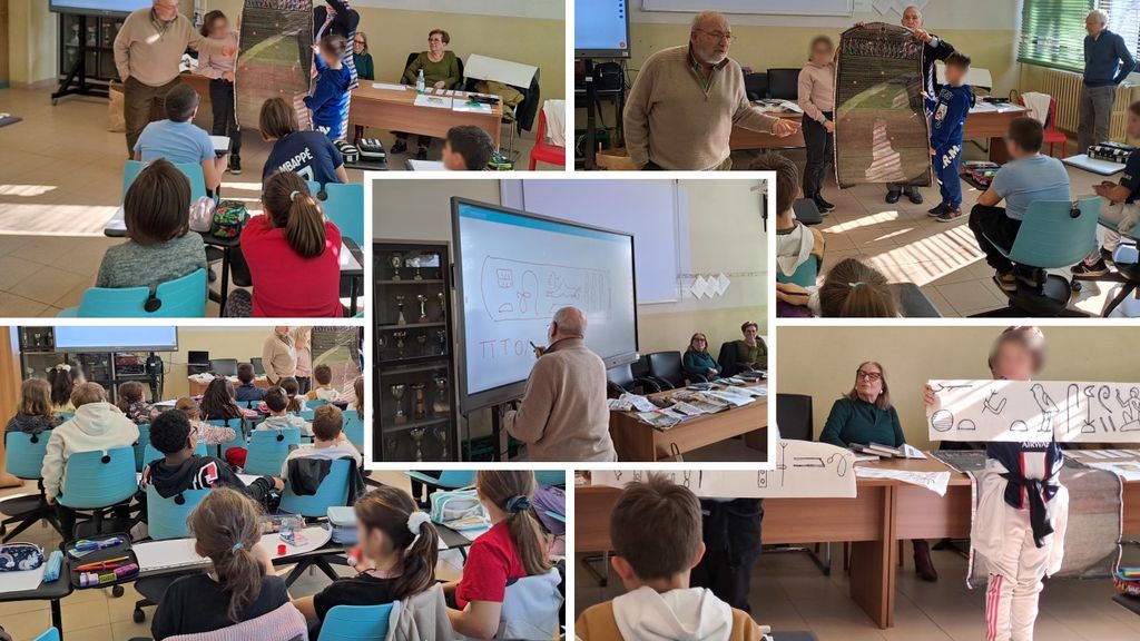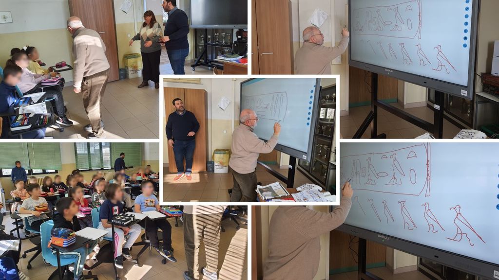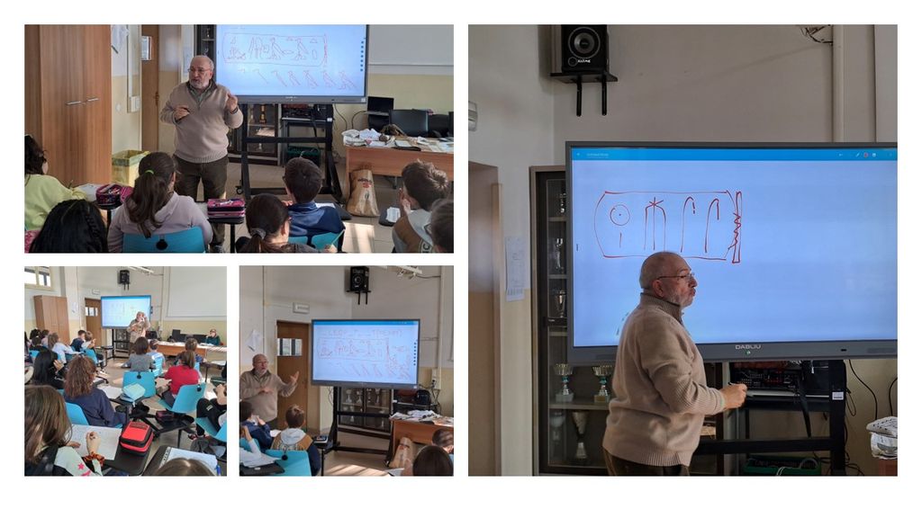 Il professor Scirè, oltre a presentare l’ultima riga della Stele di Rosetta, ha realizzato mini-cartigli con i nomi di ogni bambino e in chiusura di ogni incontro è avvenuta la consegna agli interessati.