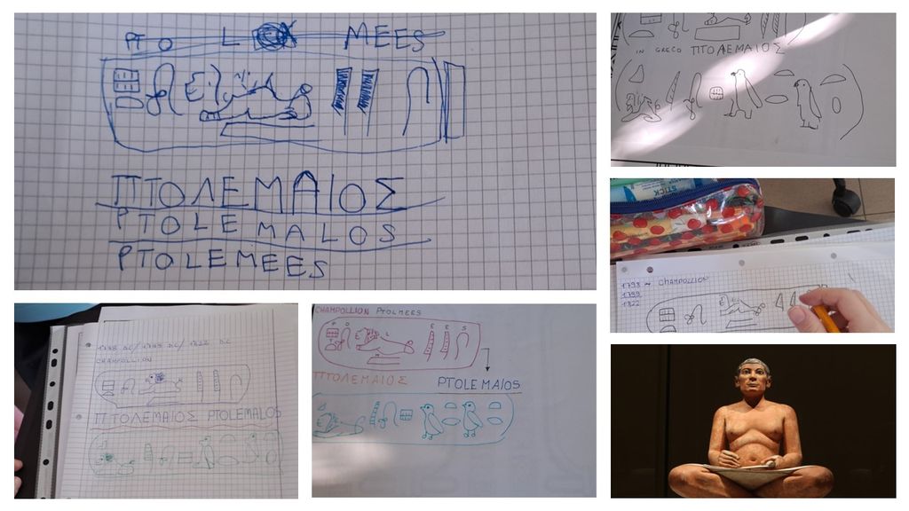 Da qui, facendo talvolta anche dei parallelismi con la scrittura cinese e araba, alla luce dell’utenza, oltre che di quella greca in base alla quale si è potuto iniziare a leggere e interpretare i geroglifici, è stato possibile realizzare un laboratorio pratico di scrittura.
