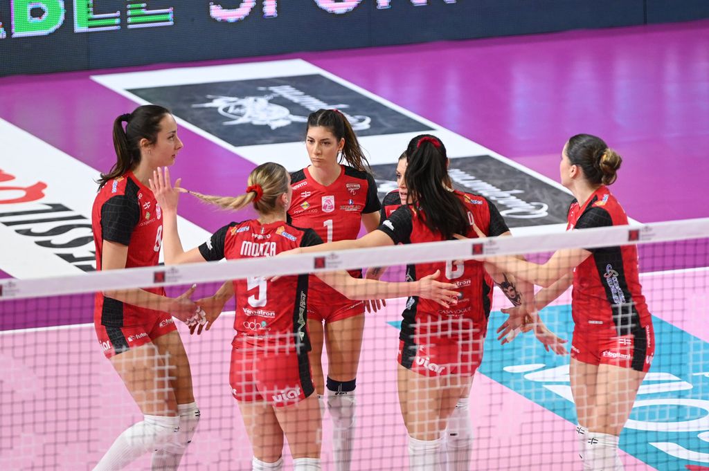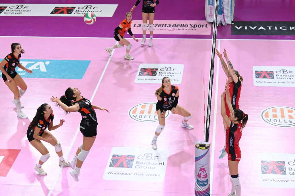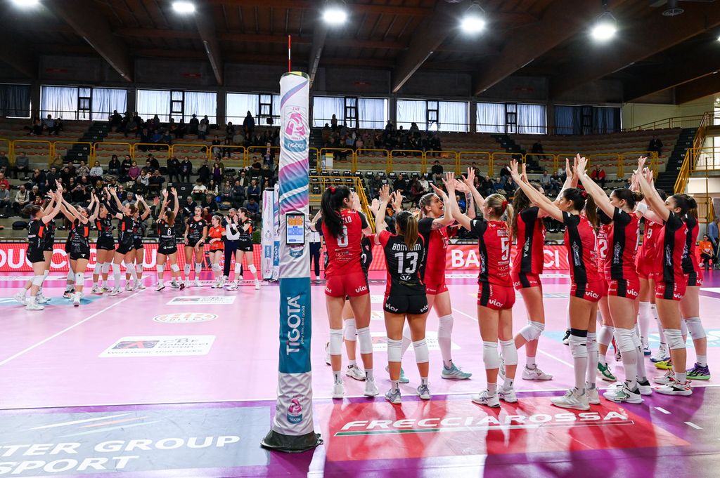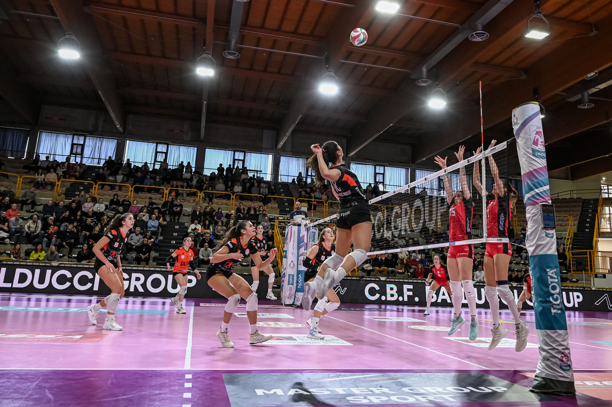 Al giro di boa della Pool Promozione, il secondo posto in classifica rimane comunque ben saldo. Con cinque partite ancora da giocare – tre in casa, nel fortino inviolato del PalaBorsani contro San Giovanni, Montecchio e Macerata e due trasferte a Mondovì e Cremona – il destino playoff è ancora tutto nelle mani delle biancorosse di coach Amadio. Ma servirà ripartire subito, sabato 2 alle 17 contro San Giovanni in Marignano (la squadra più calda del momento, che oggi ha pure battuto la capolista Perugia).