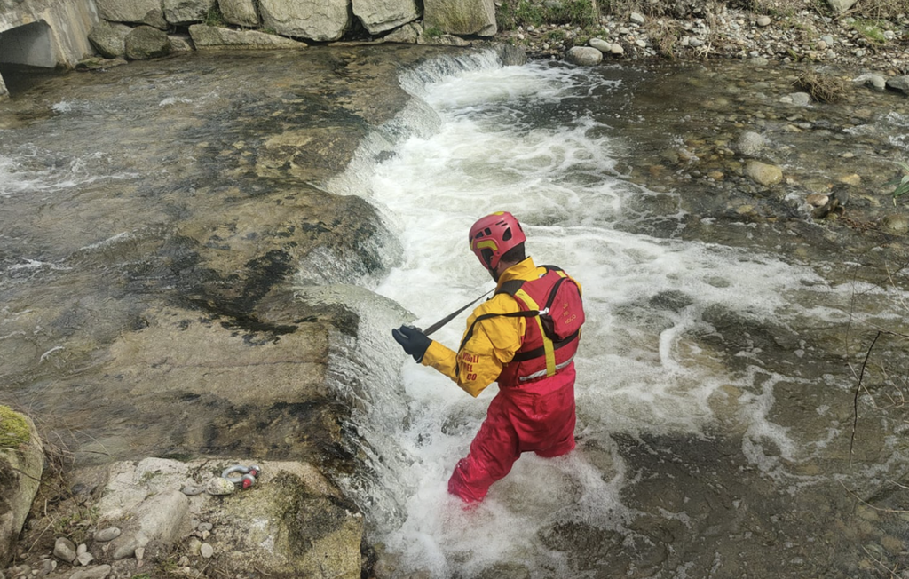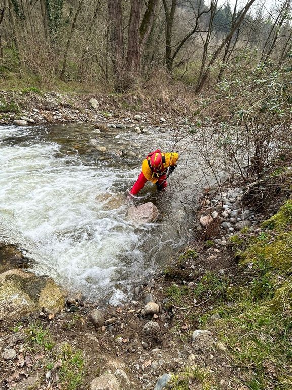 FOTO. L'argine cede e rischia di precipitare nel canale: disperso il cane che era con lui