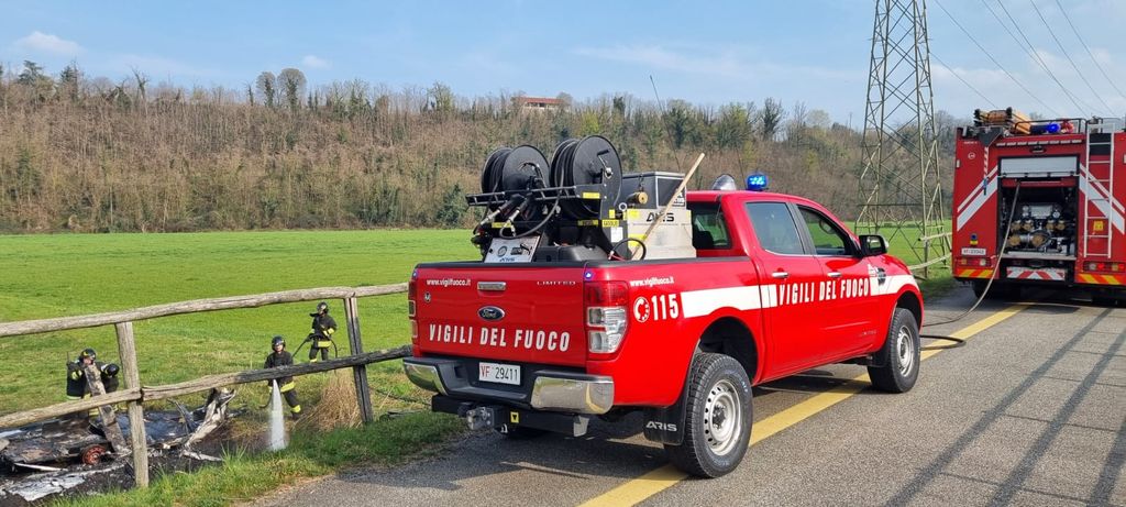 A spegnere le fiamme sono stati i vigili del fuoco della squadra di Busto Arsizio: il mezzo ridotto in cenere dal rogo si trovava in un campo di fianco alla pista ciclabile
