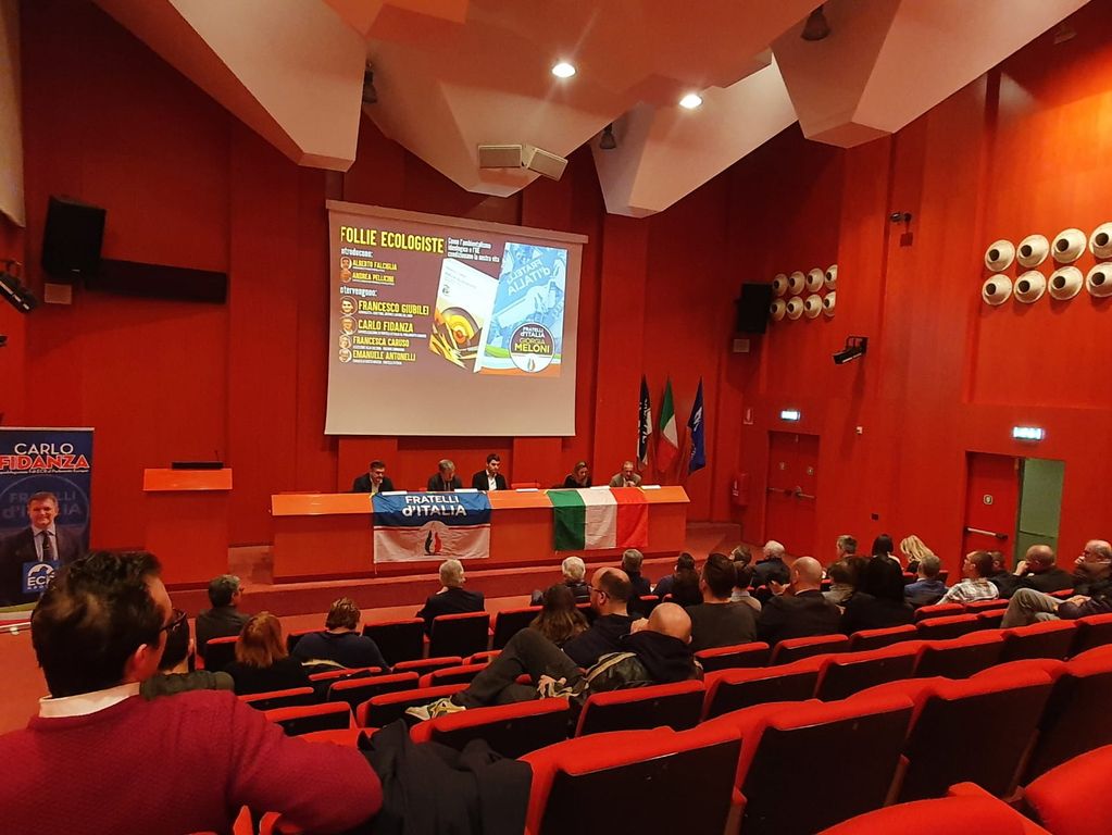 La sfida di Fratelli d’Italia per le elezioni europee in provincia di Varese è già partita. Dopo il convegno col capogruppo alla Camera Tommaso Foti e il coordinatore regionale lombardo Carlo Maccari tenutosi sabato scorso nel capoluogo (leggi qui), questa sera il circolo di Busto Arsizio ha organizzato ai Molini Marzoli un incontro con il giornalista, scrittore ed editore Francesco Giubilei, autore del libro “Follie ecologiste” che non fa sconti alle politiche dell’Unione Europea in quest’ambito.