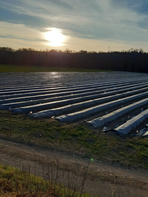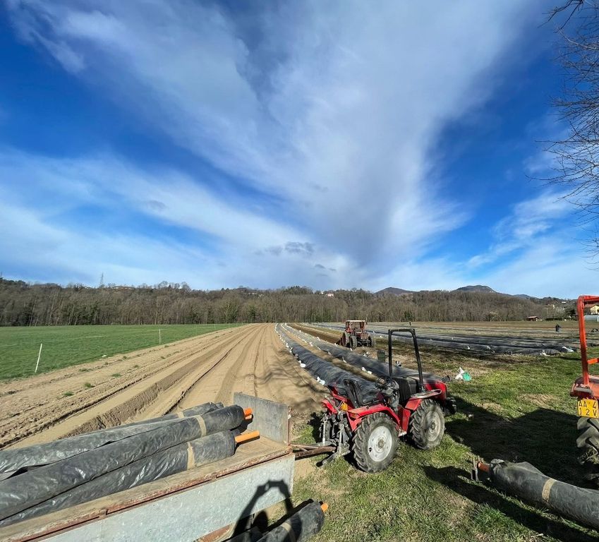 Nel mese di marzo iniziano i lavori che porteranno alla raccolta stagionale: si forma un cumulo di terra sopra le piantine e si copre poi il tutto con un telo nero, che fa sì che il terreno rimanga caldo e non si bagni. Da lì in poi, si vanno a raccogliere gli asparagi (rigorosamente a mano, con solo l’uso della sgorbia) che spunteranno dal terreno sotto il telo: una pianta, in media, ne produce una decina per ogni stagione, e resta attiva circa dodici anni.