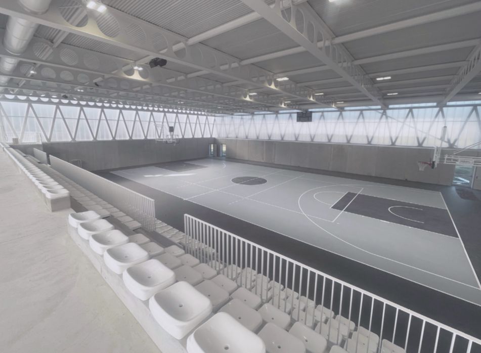 Si tratta di una struttura realizzata dallo studio GDA dell’architetto Giulia de Appolonia di Brescia con l’apporto principale dell’impresa Esteel di Roma, che ha una superficie totale di 1950 mq, un campo di pallacanestro e pallavolo, tribune fisse e retrattili e una capienza di 336 posti a sedere.