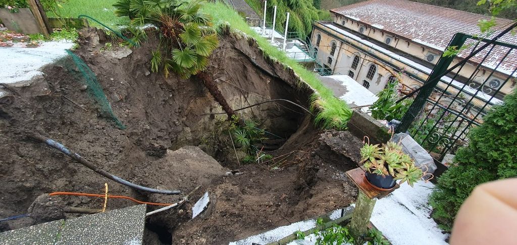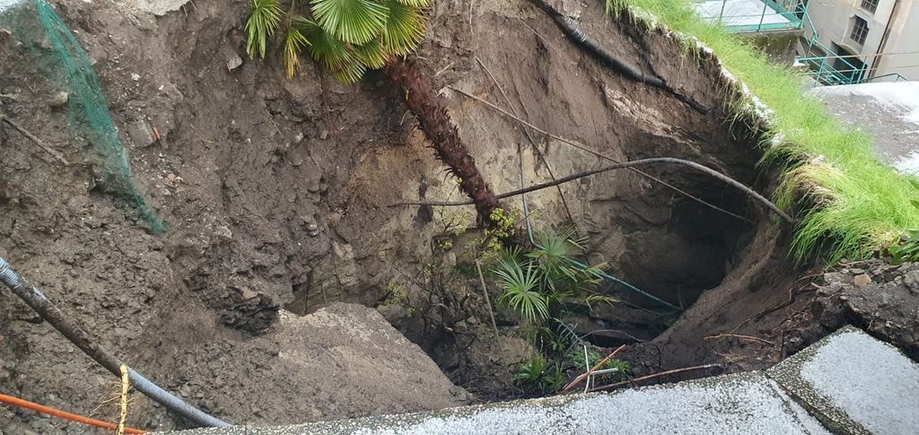 FOTO. Frana il terreno, si apre una voragine a Luino. Smottamento a Cremenaga