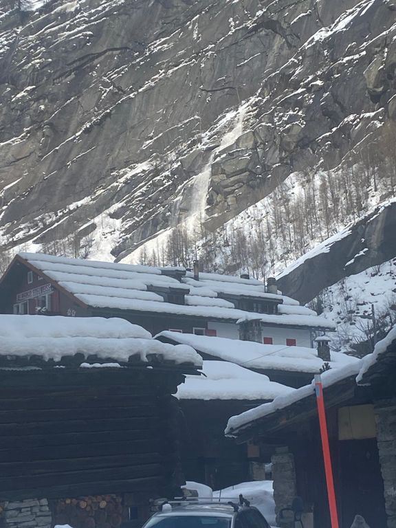 L'aumento delle temperature e il sole stanno facendo precipitare dall'alto delle neve che, staccandosi dall'alto, precipitano dalle pareti rocciose attorno a Macugnaga, in particolare a Pecetto.