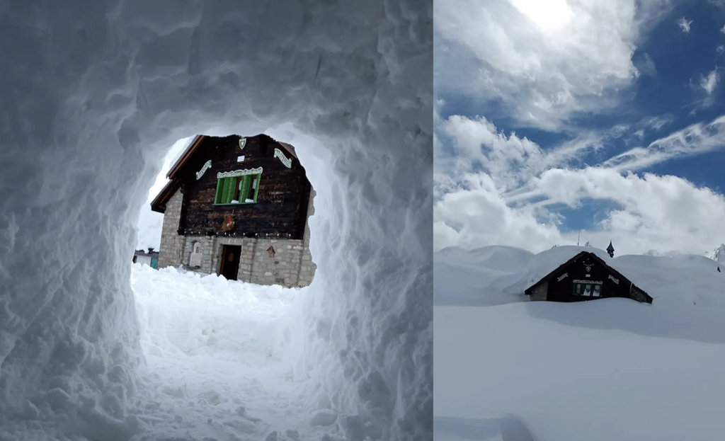 La neve è stata la protagonista della fine dell'inverno (LEGGI QUI) e ormai dell'inizio della primavera al rifugio Maria Luisa. Una neve che dipinge tutto il paesaggio: da una parte sembra proteggere creando un enorme guscio bianco, dall'altra crea isolamento e un po' di inquietudine a volte.