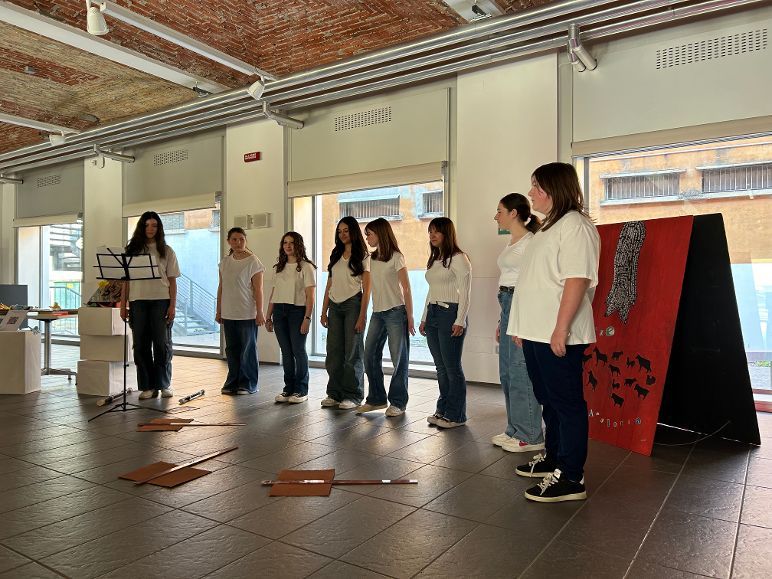 A seguire, Alessio, Carlotta, Mattia, Alessandro, Elodie, Maddalena e Riccardo hanno illustrato una città immaginata nei primi anni del Novecento, una città dove la razza umana rappresenta il passato e le macchine imperano sovrane; una città dove l’intelligenza artificiale è una minaccia che soppianta l’uomo e si sostituisce a lui.