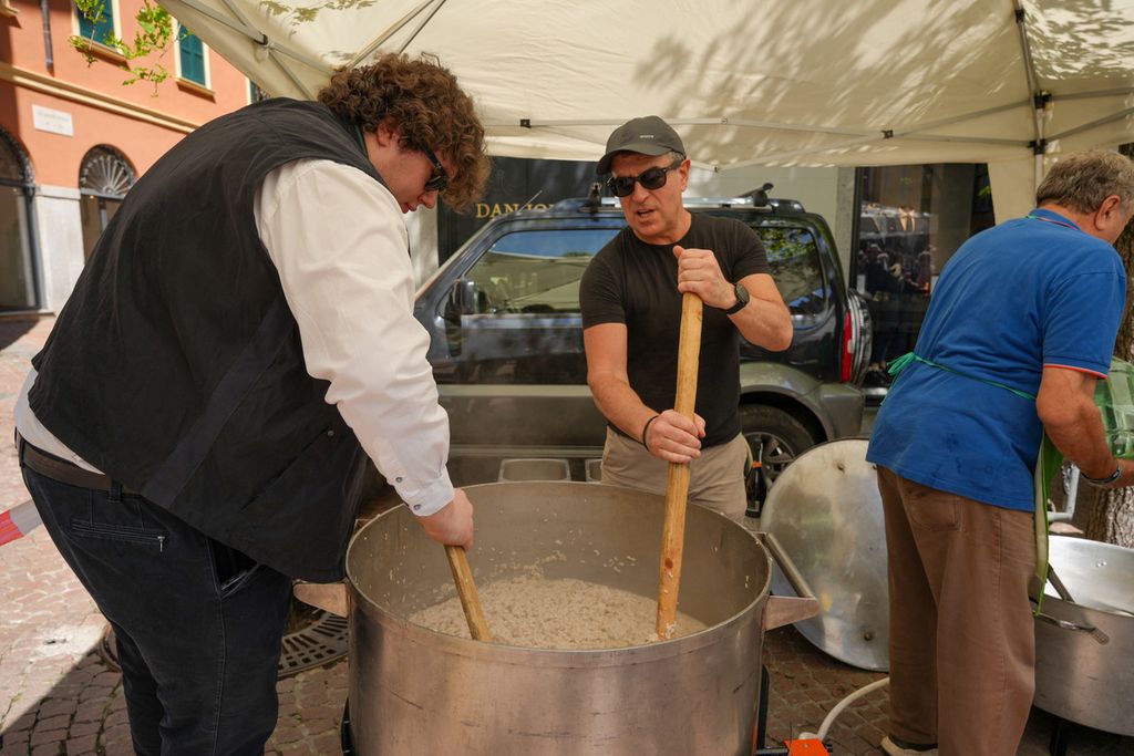 Spazio poi alla festa di piazza, con una risottata per tutti. Una scelta forse poco adatta per la giornata caldissima, ma in linea con lo spirito ruspante della Lega delle origini.