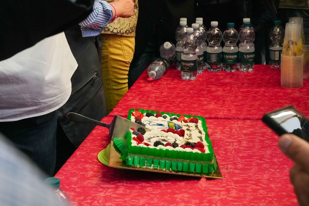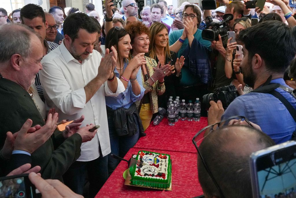 Anche Salvini ci ha scherzato su: «Oltre al risotto ci sono anche pizzoccheri e vin brulè». Non sono mancati un brindisi e il taglio della torta dedicata ai 40 anni di storia del Carroccio.