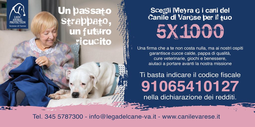 Sabato 4 maggio, dalle 10 alle 17, i volontari del canile di Varese saranno presenti con uno stand in piazza Beccaria a Varese per il lancio ufficiale della campagna del 5x1000 UN PASSATO STRAPPATO, UN FUTURO RICUCITO.