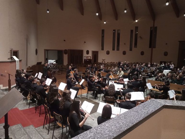 Chiesa gremita, organico imponente, musiche impegnative e di difficile esecuzione. Questa la fotografia di  mercoledì sera alla parrocchia di Madonna Regina per il concerto organizzato dall’associazione Riabitare.