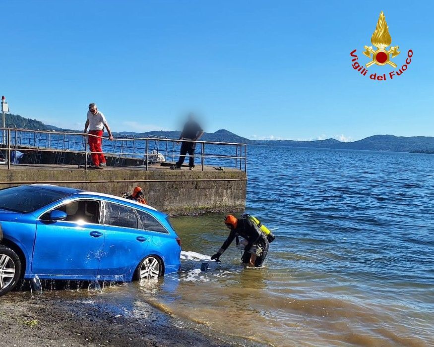 Leggiuno, auto finisce nel lago. Recuperata dai vigili del fuoco