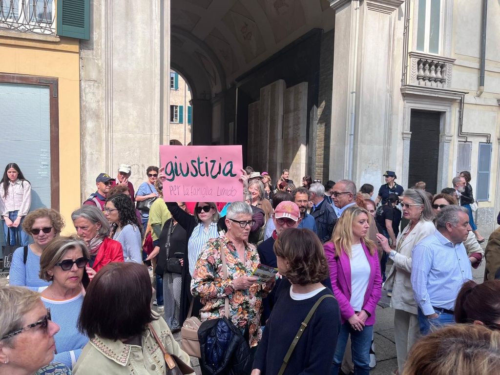 Qualcuno stringe un fiore di girasole, qualcuno si asciuga le lacrime. Tutti però urlano il nome della donna di 37 anni ancora in ospedale dopo le coltellate che l'ex marito Marco Manfrinati le ha inferto poco prima di uccidere con la stessa arma l'ex suocero Fabio Limido. Lo scandiscono battendo le mani e la piazza, nel silenzio, sembra rimandare l'eco di queste parole e di questo dolore che la famiglia Limido sta vivendo.
