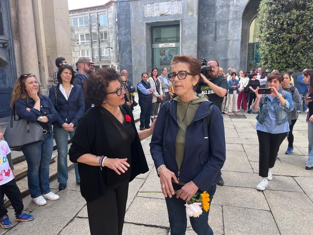 Il corteo passa sotto l'Arco Mera, entra in piazza San Vittore. Qui si dispone a cerchio, tutti si tengono per mano. Parte un applauso e Marta Criscuolo inizia a scandire ad alta voce "Forza Lavinia, forza Lavinia". La piazza risponde. Gli applausi e il coro sembrano non volere finire mai. E' il momento più emozionante, quello dell'amore e della solidarietà che vincono sulla violenza e sull'odio. Marta lo capisce. E finalmente sorride.